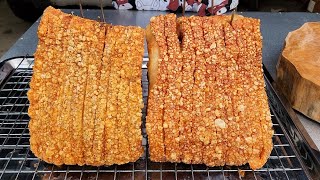 อร่อย!หนังหมูทอดชิ้นโต การทำหมูสามชั้นย่างกรอบ